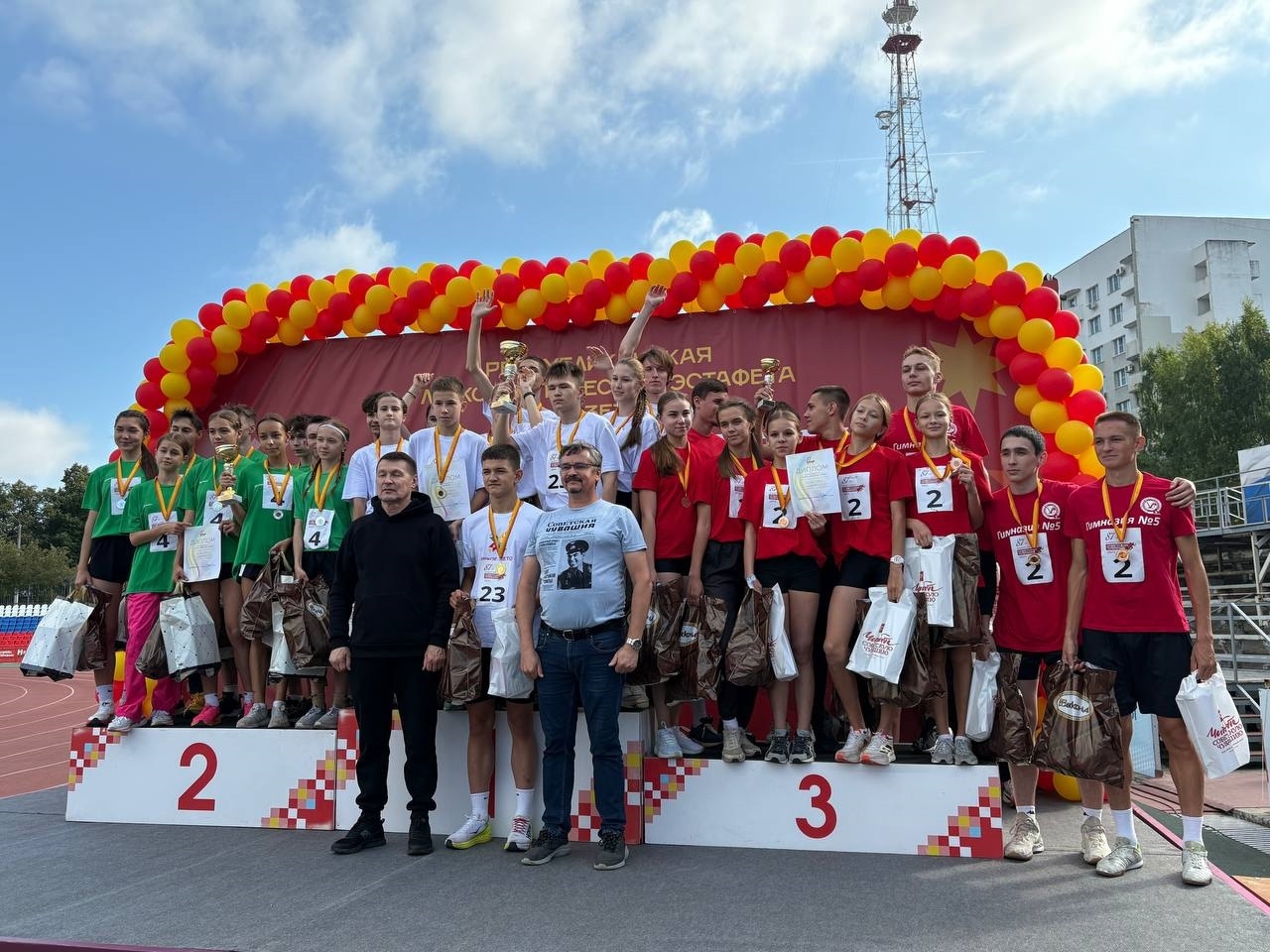 6 сентября на чебоксарском стадионе «Олимпийский» прошёл традиционный Фестиваль спорта прессы Чувашии – 87-я Республиканская легкоатлетическая эстафета газеты «Советская Чувашия» памяти летчика-космонавта Андрияна Николаева. Более 120 команд представляли лучших легкоатлетов муниципалитетов, предприятий, учебных заведений и различных организаций. В забеге сборных общеобразовательных школ участвовало 24 команды со всех районов Чувашии, городов Чебоксары и Новочебоксарск. В жёсткой конкурентной борьбе победила сборная Новочебоксарска, команда Ленинского района заняла 3 ступень пьедестала, уступив 2 место сборной Московского района.